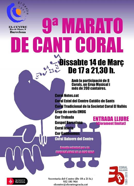 Preneu nota: Serà el dijous 18 a les 21h a la Parròquia de Sant Ildefons (cr. Madrazo, 92)