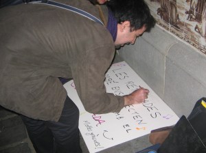 Us adjunto algunes fotos de la trobada. Malgrat l’assistència un pel fluixa, els que hi vam anar ens ho vam passar d’allò més bé! De passada, vàrem aprofitar per fer promoció del cor i donar alguns flyers. Recordeu que “Busquem tenors i baixos”! Després d’una hora i mitja, la cistelleta, feia força goig de veure! Un cop acabats, vàrem anar a prendre un soparet per recobrar forces, refer la gol·la i fer-la petar.